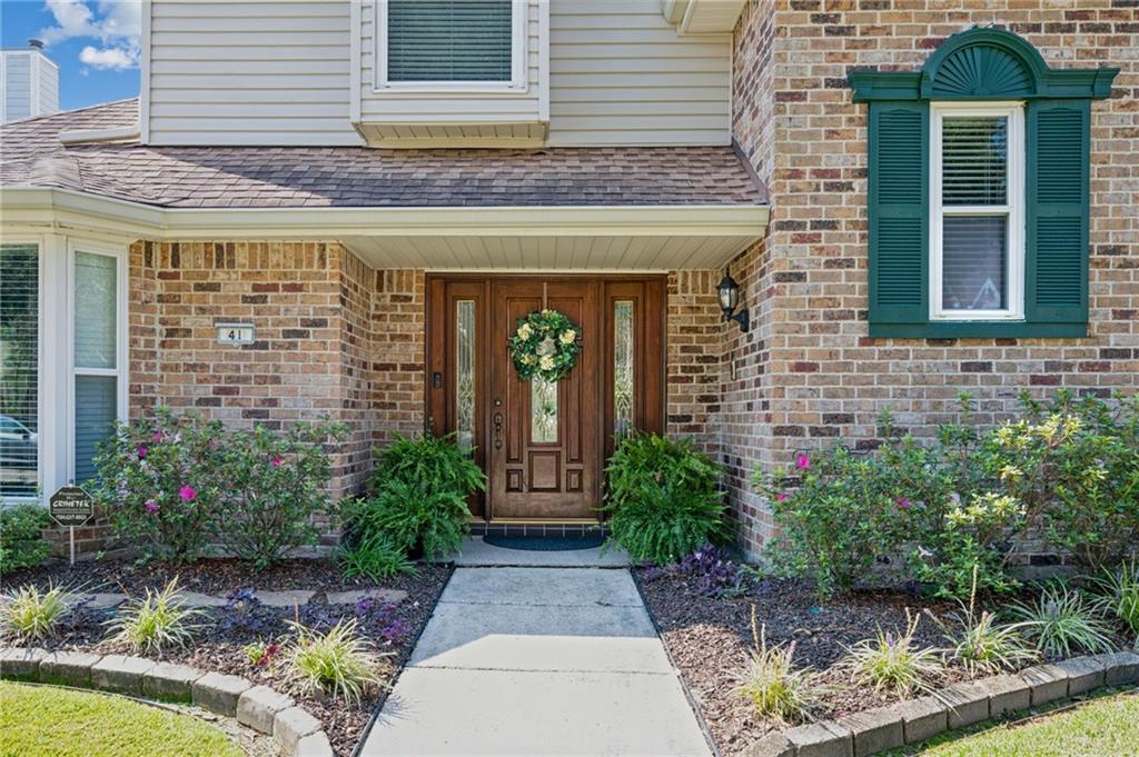 Meticulously maintained home in the enchanting Park Timbers neighborhood! Pull onto one of the most gorgeous blocks in the area to find 41 Kings Canyon - which includes four beds, 2.5 baths, and lots of storage space. Setting the stage is the incredible curb appeal that is lush with landscaping. Enter into the foyer, which includes a coat closet. From there, you will be enamored with the vast den that includes a 16' vaulted ceiling, a working fireplace, and built-in shelving. You won't want to miss the kitchen that dreams are made of! Where to even begin?! Tons of cabinetry, granite countertops, stainless steel appliances including a 6-burner Viking range, a pot filler, bonus drink fridge, and an extra sink. It truly has it all! EVEN A PANTRY! There is an additional butler's pantry to build a coffee bar or have a stand-up freezer. This incredible kitchen has enough room for a breakfast table, too. If hosting all the holidays at your house is up your alley, the formal dining and living rooms will be sure to please. There is room for it all! Your primary suite is also expansive - including space for a reading nook or sitting area. There is also an ensuite bath and two walk-in closets. You can also enter the back patio for your morning coffee and newspaper from here. Upstairs are the remaining bedrooms and bath. All bedrooms are spacious and include excellent closet space! Head outdoors to your gorgeous backyard and covered patio with a fan for outdoor dining. The garage offers room for parking and has an additional storage space built on the back. Your yard tools are easily tucked away and organized here! Lagniappe items: termite contract, assumable flood insurance policy, lifetime window warranty, fully repainted, new flooring, newer fence, hot water dispenser in the kitchen, decking in the attics for additional storage, and newer HVAC systems. Park Timbers has a Swim & Tennis club you can join, too! Come check out this spectacular home & neighborhood!